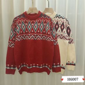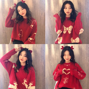 2020新年红色圣诞装提花针织衫女士圆领套头秋冬毛...