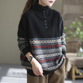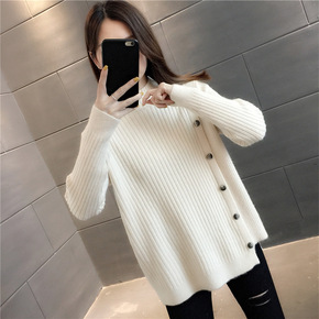 小个子纽扣高领毛衣女2021年新款秋冬季时尚洋气女...