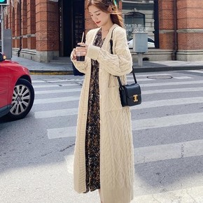 超长毛衣外套女秋冬季麻花百搭韩版慵懒风宽松加厚中长...