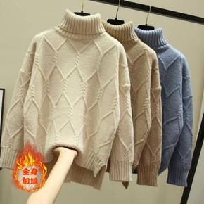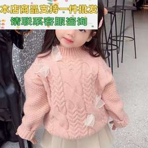 女童毛衣加厚加绒针织衫2021春秋童装中大童儿童打...