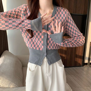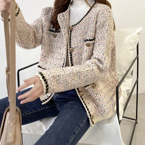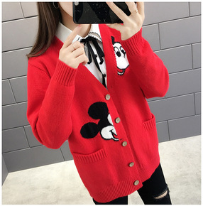 2021秋冬季新款女装米奇提花针织开衫外套女单排扣...