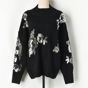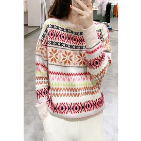 2021秋冬新款中长款撞色五角星针织毛衣开衫女式Z...