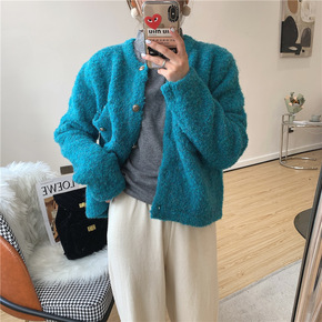 三色加厚型特种毛纱马海毛兔混女式加厚毛衣开衫...