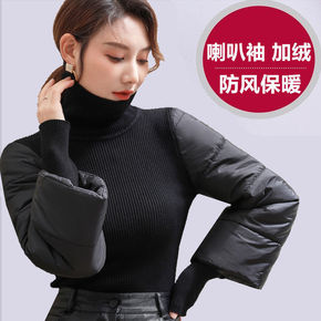 配皮草马甲的布袖打底衫女冬羽绒棉袖内搭中长款高领加...