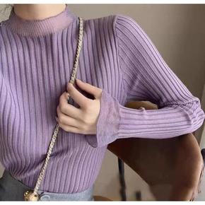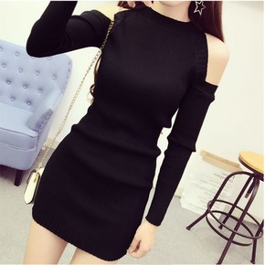 镂空半露肩女2021春秋季新款针织毛衣中长款长袖包...