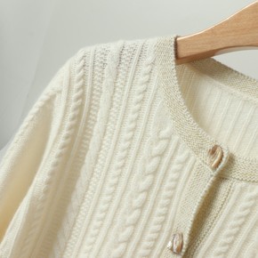 3纱加厚重磅复古扭花保暖毛衣圆领山羊绒开衫女装秋冬...