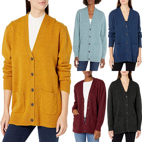 亚马逊秋冬休闲长袖纽扣毛衣开衫外套女宽松粗毛线麻花...