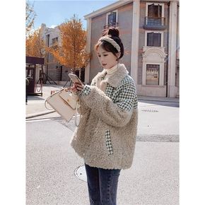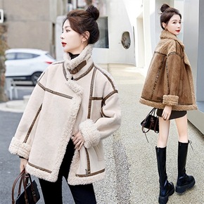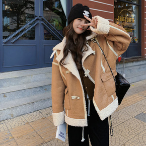 羊羔毛外套女潮ins冬学生加绒加厚韩版小个子短款拼...