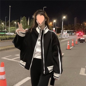 加绒加厚外套女秋冬季新款韩版休闲棒球服夹克上衣秋...