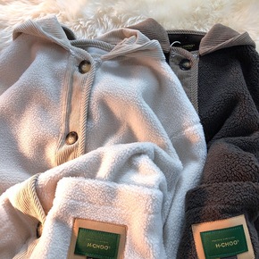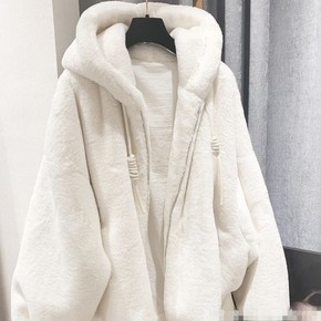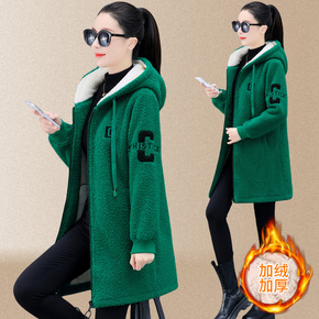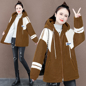 休闲连帽颗粒绒外套女2022年冬季新款加绒加厚宽松...