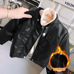 外贸 儿童皮衣2022冬款女童男童加绒机车皮夹克外...