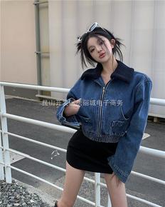 2022新品爆款 拼接短款加厚加绒牛仔外套秋冬新款...