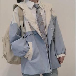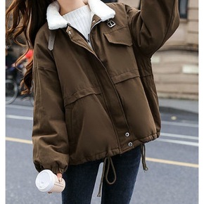 2022春秋新款小个子学院风加绒加厚工装风衣夹克外...
