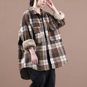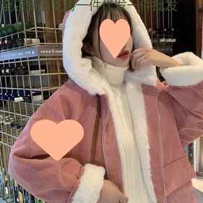 灯芯绒外套女2022新款冬季羊羔毛古着仙女棉服加绒...