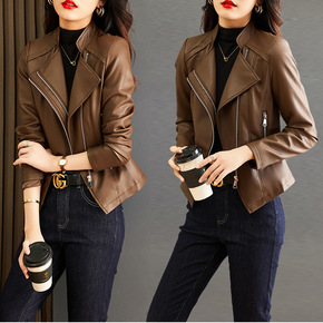 2022秋冬装新款西装领机车真皮皮衣女短款百搭绵羊...