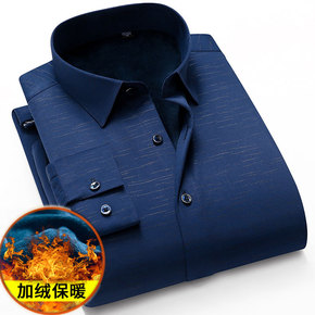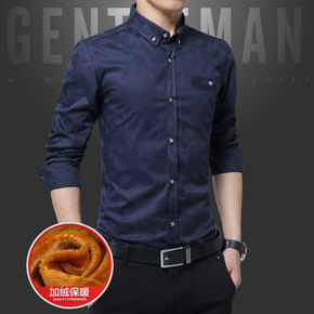 男士衬衫男长袖冬季休闲修身商务高端加绒加厚保暖高级...