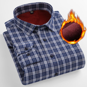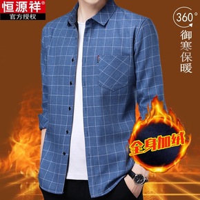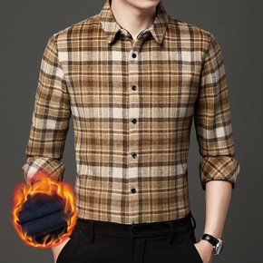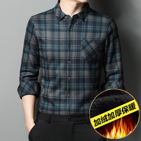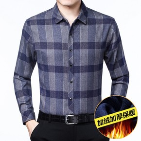秋冬季保新款暖衬衫男加绒加厚休闲格子长袖衬衣中青年...