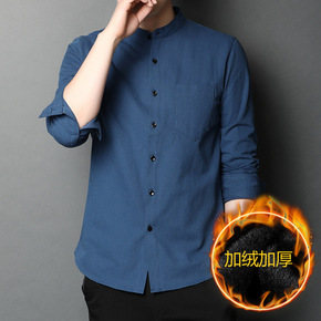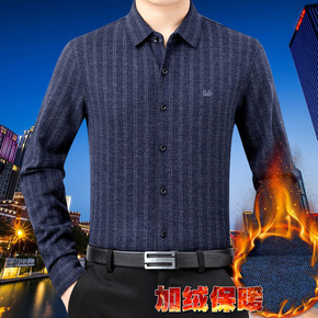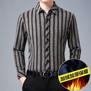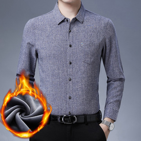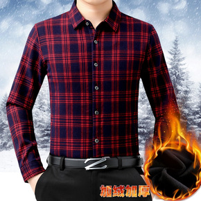 秋冬中老年男装加绒加厚爸爸冬装长袖衬衣中年男士保暖...