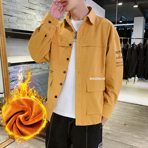 纯色加绒衬衫男秋冬季新款军旅风工装寸衫青年男士加厚...