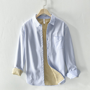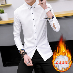 长袖衬衫男ins港风日系潮流加绒加厚内搭 外穿时尚...
