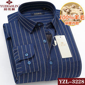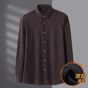 高档绵羊绒保暖衬衫秋冬新款男士修身商务休闲加绒加厚...