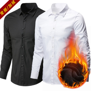 男士商务职业正装长袖衬衫秋冬季加绒加厚保暖打底衫内...