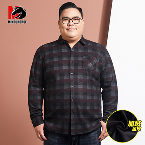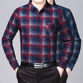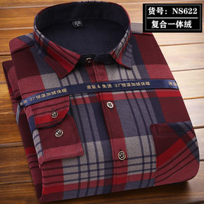 梦特骄时尚加厚男士保暖衬衣中年格子休闲宽公羊绒大码...
