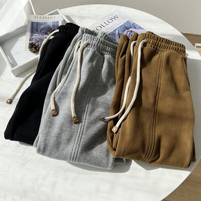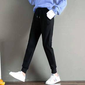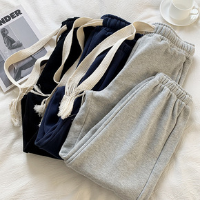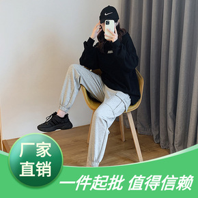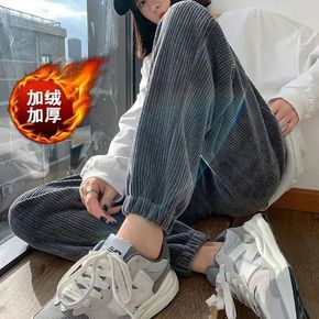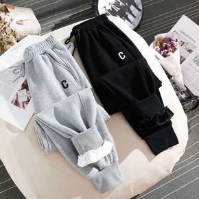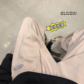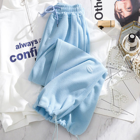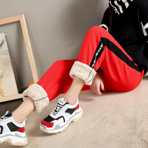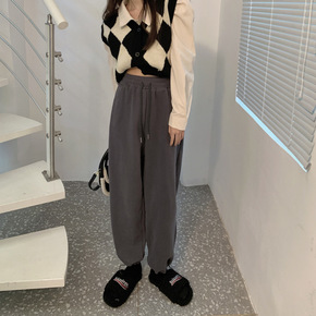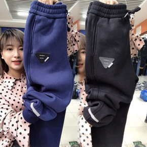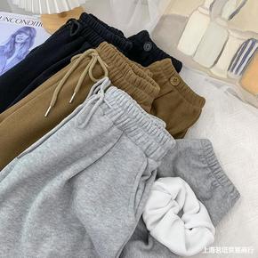 香港潮牌韩国秋冬新款运动裤女加绒加厚宽松显瘦束脚阔...