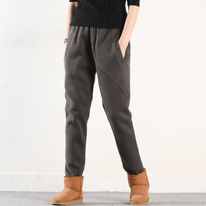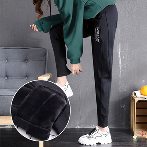 秋冬季加绒加厚裤子女外穿大码妈妈羊羔绒女裤九分运动...