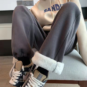 加绒运动裤女宽松束脚哈伦裤加厚羊羔绒秋冬季外穿卫裤...
