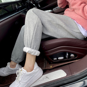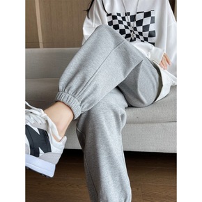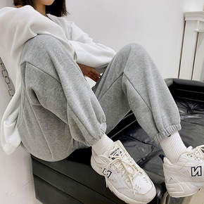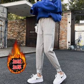 加绒灰色运动裤女秋冬束脚卫裤潮ins韩版加厚宽松显...