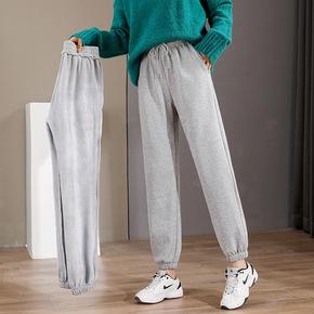 灰色加绒运动裤女秋冬宽松束脚裤子哈伦显瘦加厚外穿休...