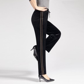 妈妈金丝绒加绒加厚直筒裤女外穿宽松显瘦中老年高腰运...