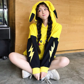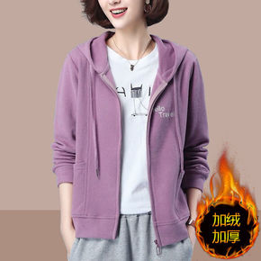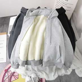 连帽加绒卫衣女薄款可爱软萌动漫卡通休闲加绒卫衣外套...