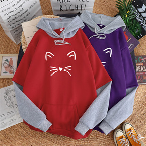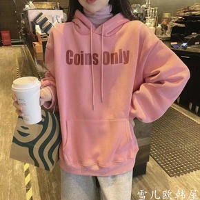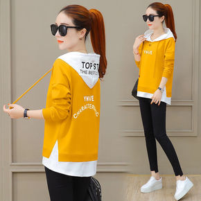 棉2020韩版卫衣女装春秋季学生薄款假两件套连帽大...