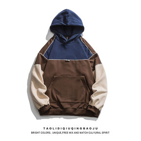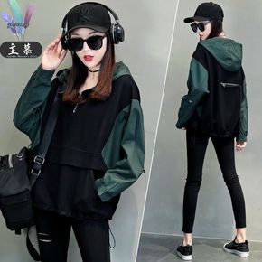 主慕卫衣女装春装新款韩版宽松拼接连帽短款外套长袖上...