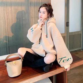 实拍2021秋冬百搭加绒加厚卫衣女宽松设计感小众秋...
