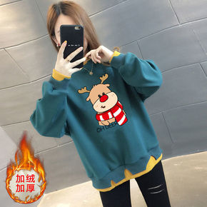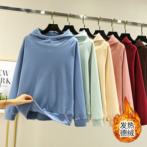 秋冬新款加厚保暖韩版休闲宽松半高领拼色大码卫衣女2...