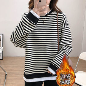 大码卫衣女秋冬2022年新款宽松韩版外套ins潮条...