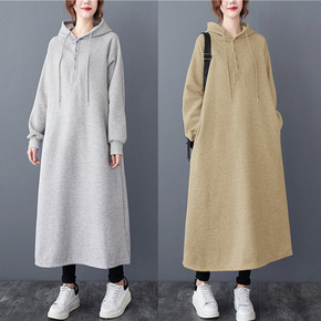 实拍2021秋冬新款韩版连帽加绒加厚休闲宽松过膝长...