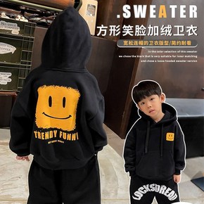 拉 2022春新款男童连帽针织长袖卫衣中大童男孩宽...