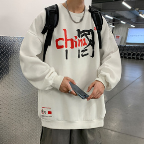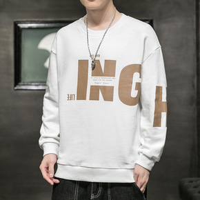 男士休闲卫衣秋冬季新款ins韩版潮流圆领加绒T恤情...