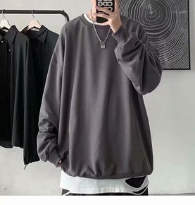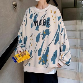 男士圆领卫衣2022新款春秋季韩版潮流宽松体恤港风...