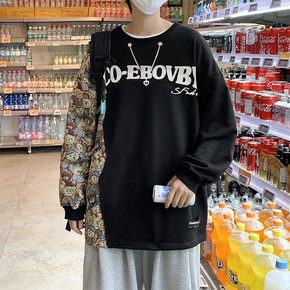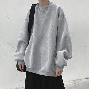 春秋款男士卫衣ins宽松潮流加绒套头无帽黑色圆领薄...