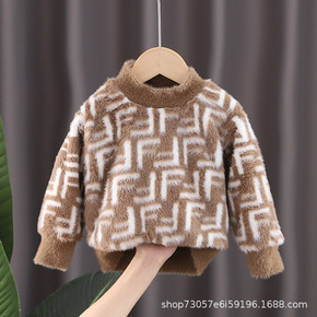 儿童水貂绒毛衣宝宝上衣2021秋冬款套头针织衫加厚...
