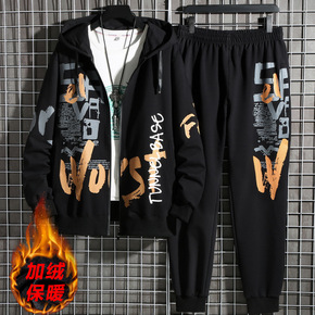 新加绒卫衣加肥加大码运动装卫衣套装休闲男装休闲男士...