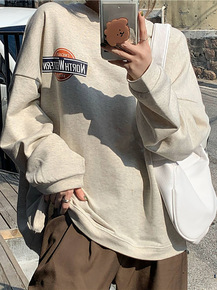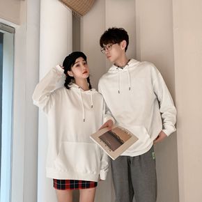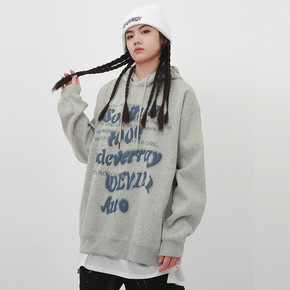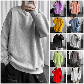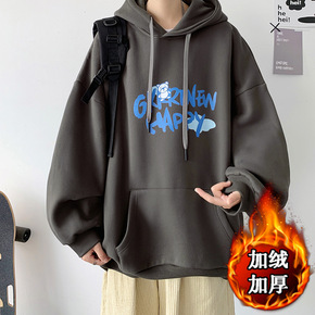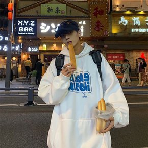 休闲潮流纯色ins圆领套头卫衣男 加绒字母连帽卫衣...