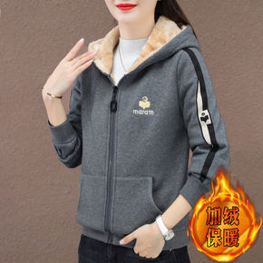 连帽加绒卫衣女薄款可爱软萌动漫卡通休闲加绒卫衣外套...