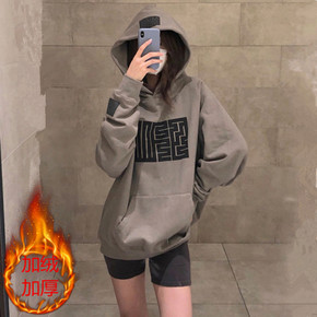 秋冬季宽松中长款百搭加绒卫衣2021新款韩版洋气显...