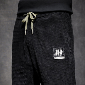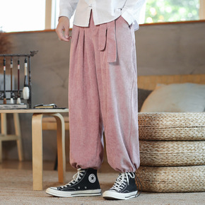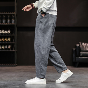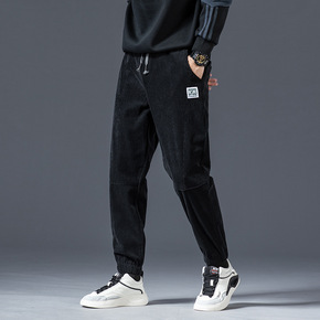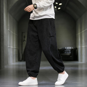 2021秋季新款男士粗条灯芯绒束脚哈伦裤民族风纯色...